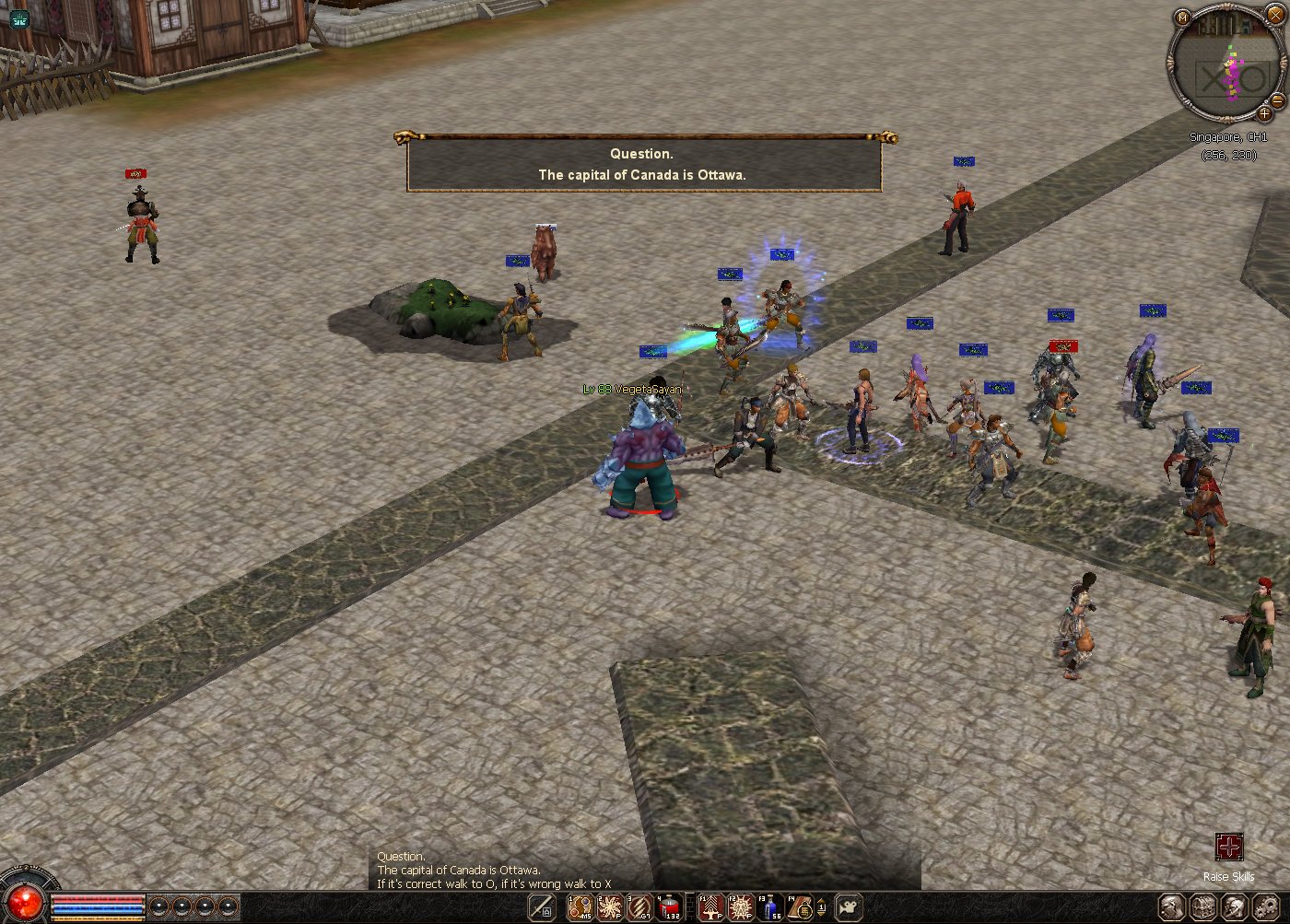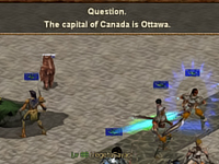 A test of wits. Trivia questions appear on screen.